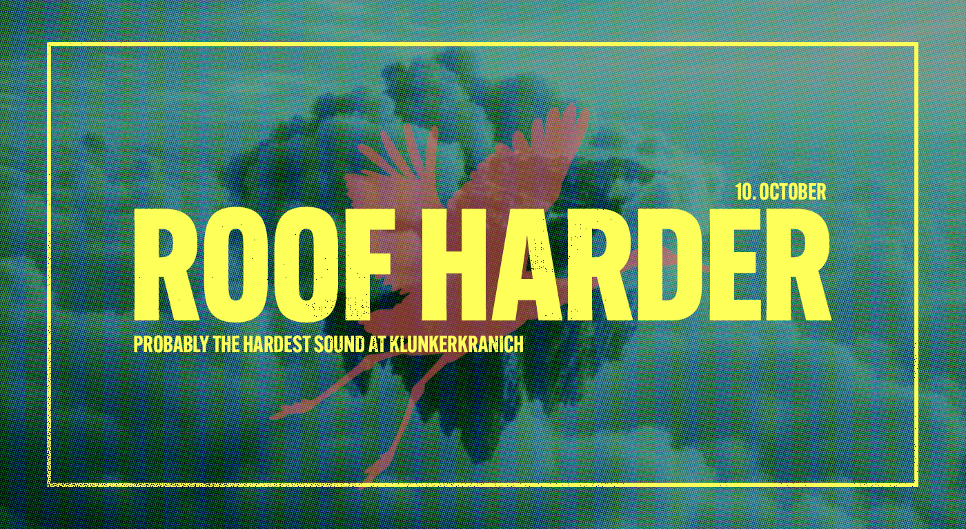 Mit Roof Harder bringt Monkey Circus Resident und Kranich Buddy Emel White „probably the hardest sound on Klunkerkranich“ in den *Club „Hinter den Alpen“. Nach einer furiosen Ausgabe im Sommer, kommt das Format nochmal zu uns, um uns zum anstehenden Herbst ordentlich einzuheizen. Tüchtig auf die 12 und gepflegt im Abriss. Als Gast ist SILSAN vom Bahnwärter Thiel aus München geladen. Um den Rest kümmert sich die Truppe hinter „Roof Harder“ samt Silvi Knallt, einem b2b von Blank Vision mit Gastgeber Emel White und einem very special Psy Set von unserem Resident DJ Fat Lip!